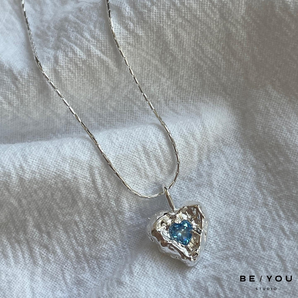This delicate necklace features a pure, blue sapphire that reflects the beauty of a clear, blue ocean. Its unique design captures the sweet, romantic beauty of love, creating an enchanting piece of jewelry that will add a touch of elegance and class to any outfit.