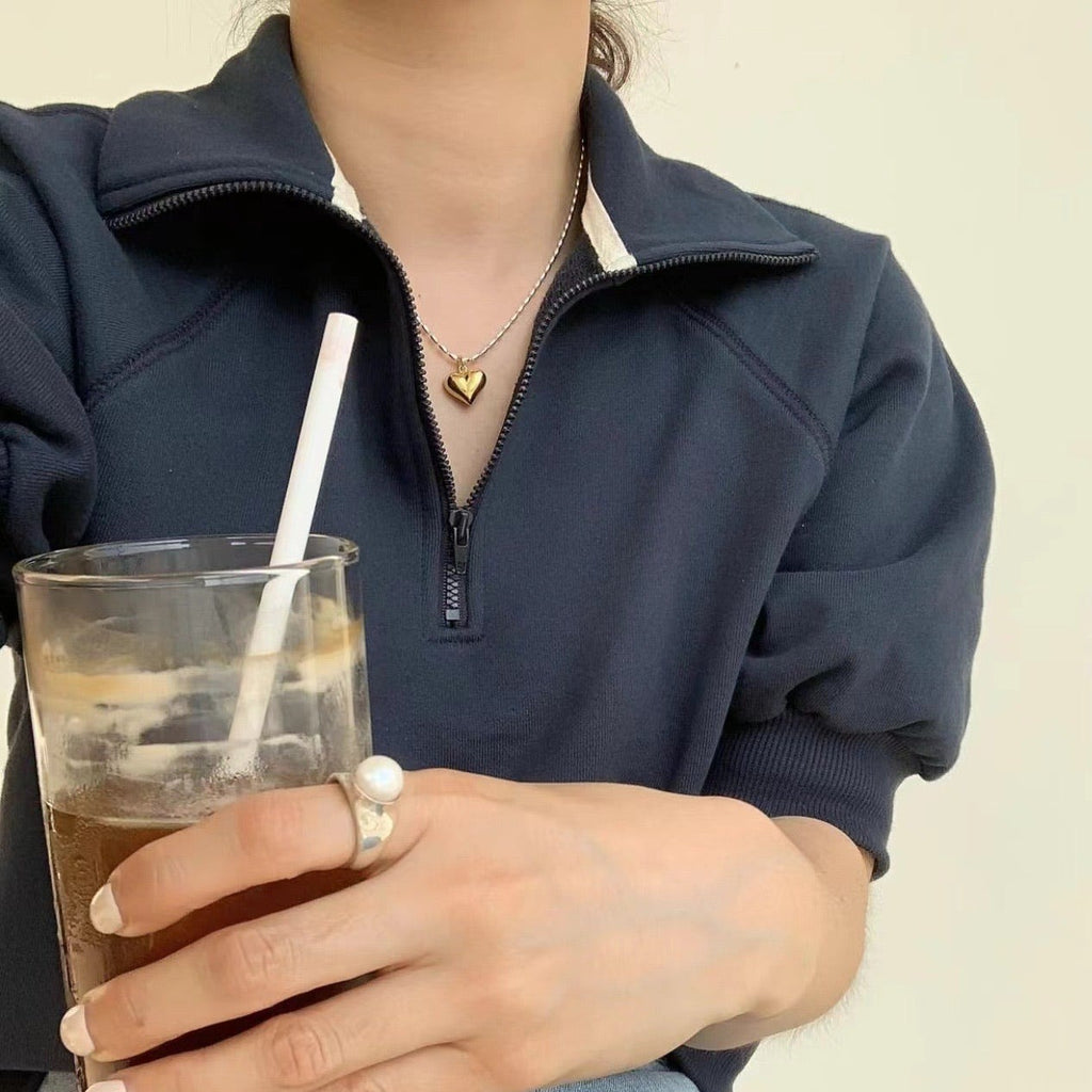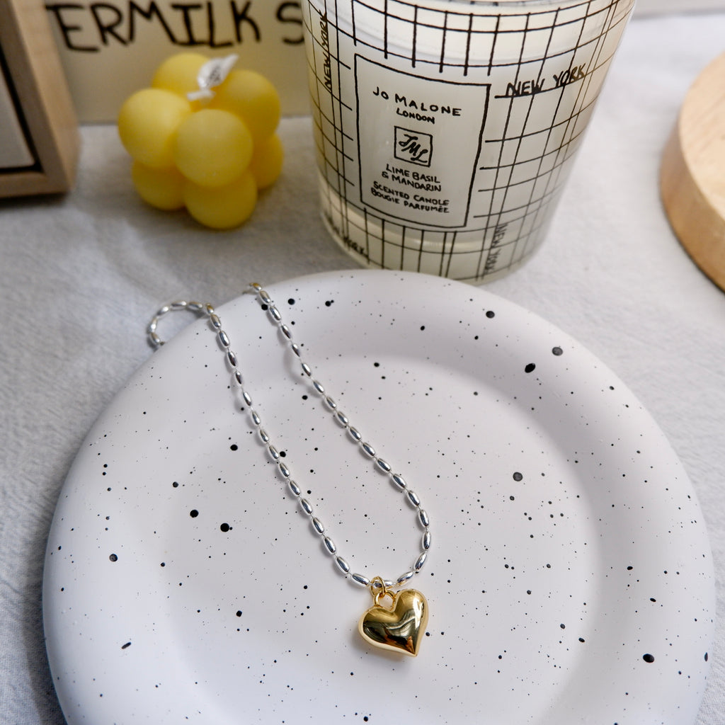 Our gold heart necklace with a silver chain is perfect for anyone who wants to add some sparkle and shine to their look. It makes for a thoughtful and memorable gift for a loved one, or a perfect addition to your own jewelry collection.