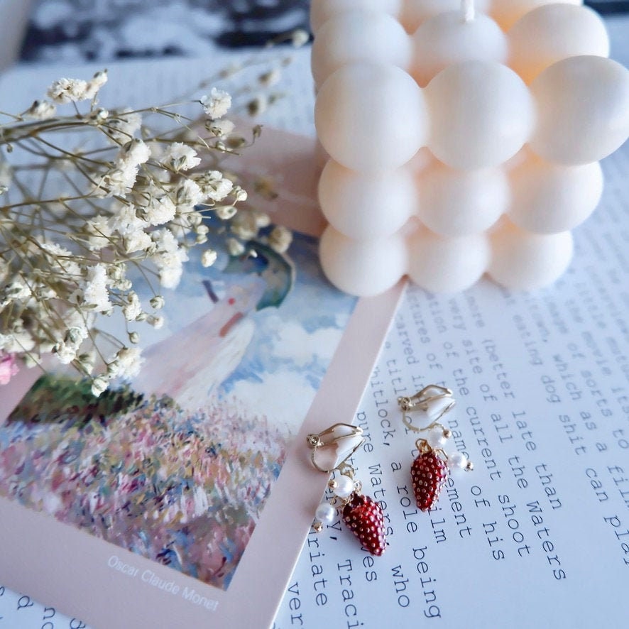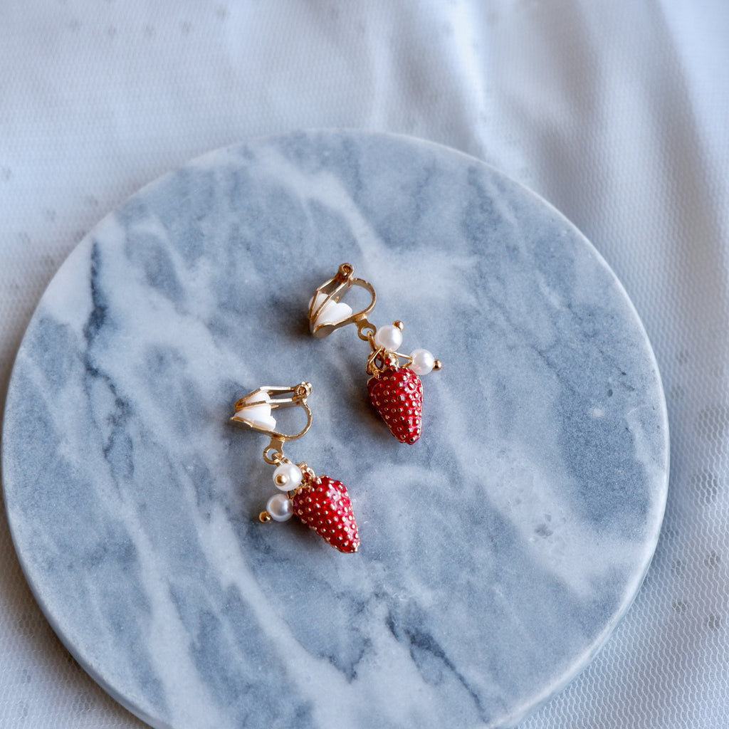 Strawberry Clip on Earrings No piercing